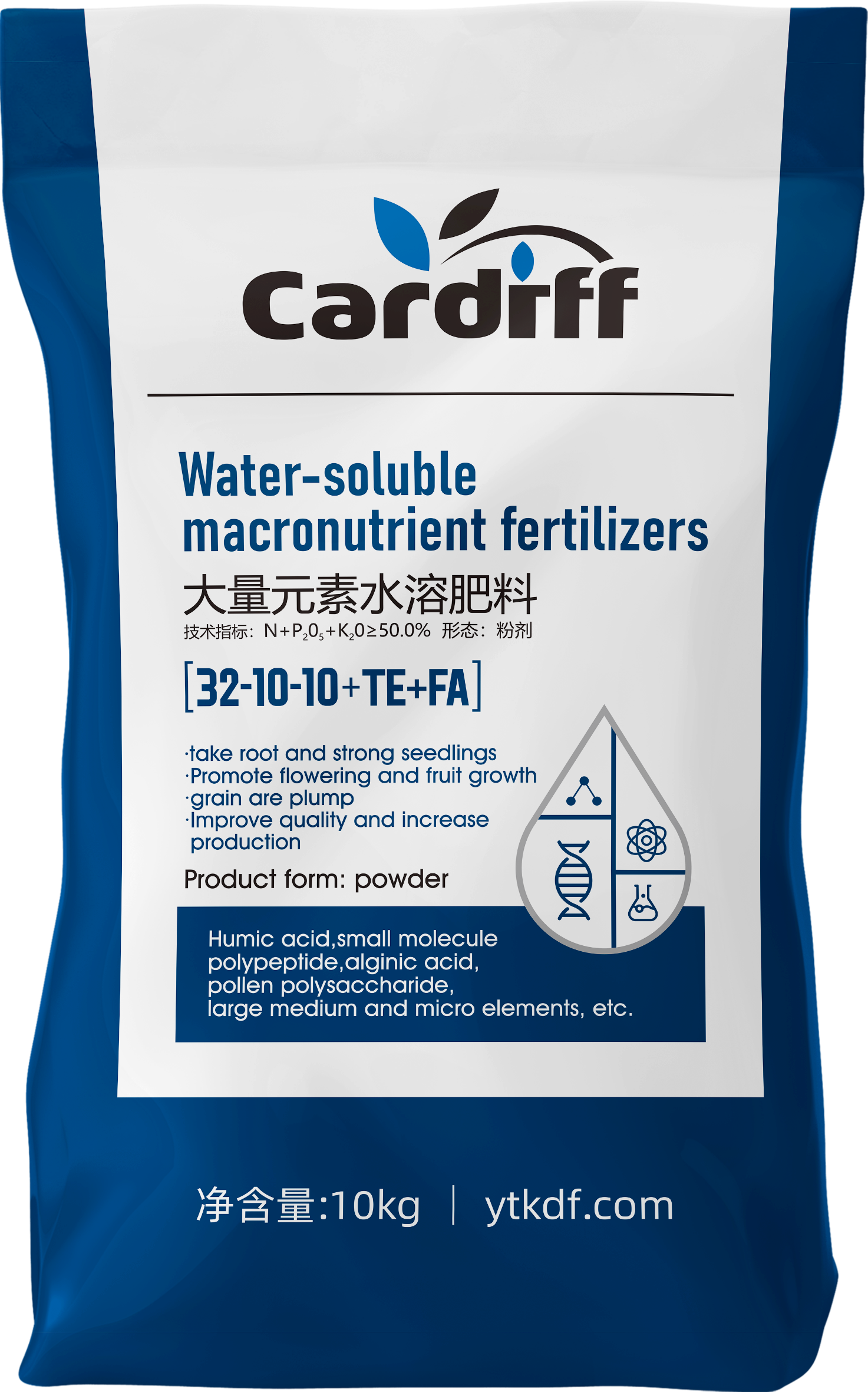 粉剂高氮型32-10-10+TE+FA大量元素水溶肥料10kg_生根壮苗、孕花促果、籽粒饱满、增产提质