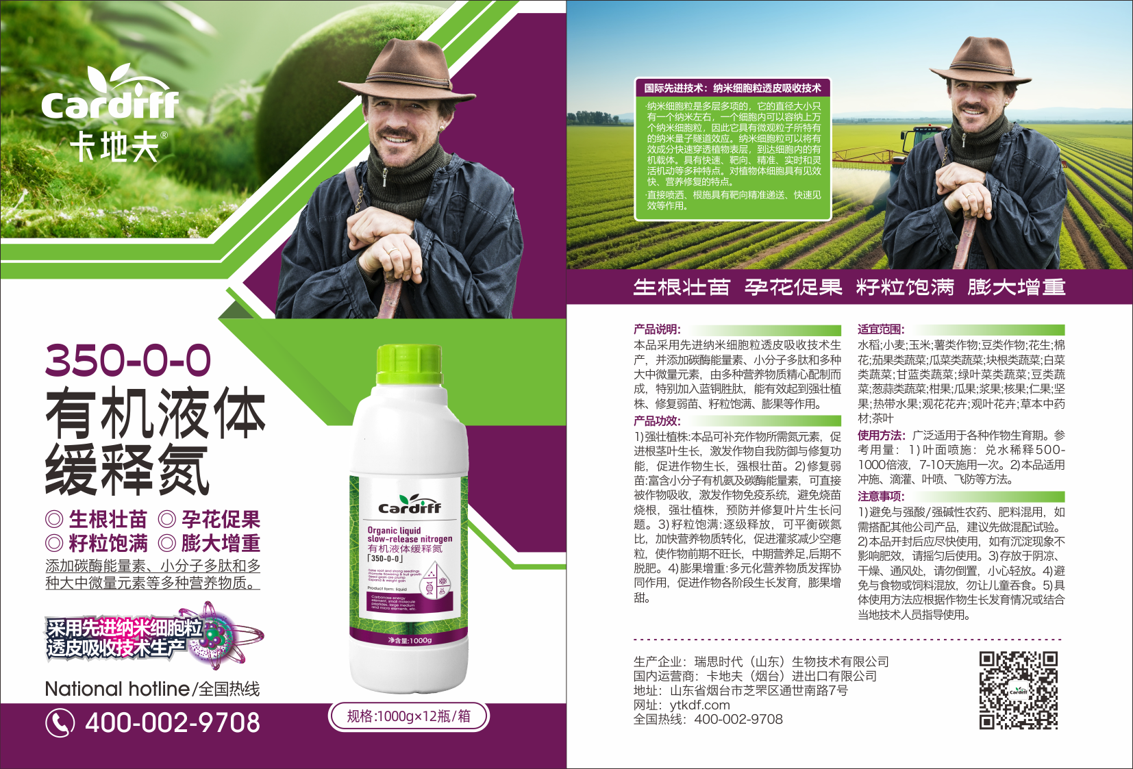 卡地夫有机液体缓释氮[350 - 0 - 0],性能优、效果佳,能帮咱农户提升种地效率,保障生产安全,实现可持续耕种,选它,就是为咱的农田选个好帮手,奔向好收成!
