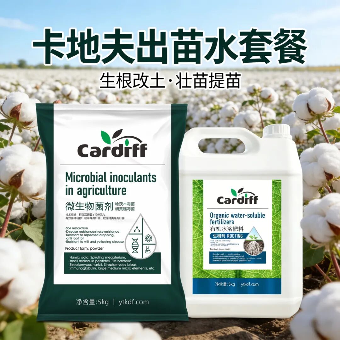 在新疆,种地从来不是一件容易的事。种子播下去了,心却悬在半空——怕倒春寒冻坏幼芽,怕盐碱地“腌”住根系,怕除草剂残留让苗黄苗弱,更怕激素类生根剂带来的“虚胖”假象。 出苗水,作为作物与土壤的**次深度对话,其质量直接决定了这一季的成败。如何选对出苗水,让每一粒种子都能安全、整齐、健壮地破土而出,是每一位种植户开春后的头等大事。 01 什么时候用出苗水? 播种结束后,当即或*迟不超过3天,接入水源进行滴水出苗。通过均匀透彻的滴水,确保整块条田土壤墒情一致,让种子萌发时间整齐划一,避免“大小苗”现象。 02 春播三道坎--为什么要用 出苗水? 新疆春播,挑战重重。开春气温不稳,倒春寒频发,低温冻害直接影响出苗。同时,土壤有机质匮乏、盐碱化程度高,多年大化肥过量使用更破坏了土壤团粒结构,种子“挣扎”出苗难度大。此外,激素类生根剂易导致根系畸形,只长主根不长侧根;除草剂药害残留累积,更造成黑根、烂根、死苗等问题。 03 五选定乾坤--出苗水如何 选择? 面对复杂条件,出苗水的选择必须科学严谨:一选安全无激素的产品,确保根系自然健壮;二选小分子结构、易吸收的产品,见效快、不浪费;三选有益菌含量高、能提地温的产品,有效缓解低温冷害;四选有**技术、成熟可靠的产品,效果有保障;五选身边人都在用、都受益的产品,口碑是*好的证明。 04 黄金组合拳:为什么推荐卡地 夫微生物菌剂+生根剂? 卡地夫出苗水套餐——微生物菌剂+生根剂,正是为新疆这片土地量身定制的解决方案。 卡地夫微生物菌剂,富含高活性有益菌群,随水进入土壤后,迅速在种子周围形成“微生态保护圈”。它们能有效抑制土传病原菌,分解土壤中残留的药害物质,活化被固化的磷钾元素,逐步修复被大化肥破坏的土壤团粒结构。同时,有益菌的代谢活动还能提升地温1-2℃,为种子萌发营造一个温暖、安全、疏松的“温床”。 卡地夫生根剂,区别于激素类产品的“伪生根”,其核心在于“养根”。采用小分子结构,易吸收、无刺激,能够精准激活作物的生根潜能,诱导侧根和毛细根的大量萌发。让幼苗在出土前就建立起庞大而健康的根系网络,真正做到“根深叶茂”,从源头上杜绝黑根、烂根问题。 05 出苗水在不同作物上的优 质效果 有效抵御倒春寒,出苗整齐,棉苗健壮,红茎比例合理,根系白嫩发达,为后期伏桃满枝筑牢根基。 增强顶土能力,减少“戴帽”苗,茎秆粗壮,根系下扎深,抗倒伏、抗风能力显著提升。 促进须根系统形成,缓苗快,叶片浓绿,有效减少死苗断垄,抗病性明显增强。 出苗率高,幼苗整齐健壮,根系发达,抗逆性强,为后期糖苷积累奠定良好基础。 促进种子快速萌发,出苗整齐一致,根系发达,幼苗健壮不徒长,有效减少立枯病、猝倒病等苗期病害发生。 选对出苗水,就是为作物选对了“护身符”。卡地夫微生物菌剂+生根剂出苗水套餐,安全无激素,养地又养根。它不仅能帮助您的作物顺利闯过倒春寒、盐碱地、药害残留这三道难关,更能从“根”本上培育壮苗,让丰收赢在起跑线上。 英文版|English version Swipe up and down to see the details Late spring cold snaps, saline-alkali soil, and herbicide residue? No need to worry—Cardiff Sprouting Water Package protects seedlings from the 'root'. In Xinjiang, farming has never been easy. Once the seeds are sown, worries linger in the air—afraid that late spring cold snaps will freeze the young sprouts, that saline-alkali soil will 'pickle' the roots, that herbicide residues will make the seedlings yellow and weak, and even more afraid of the 'false plumpness' caused by hormone-based rooting agents. Sprouting water, as the first in-depth interaction between crops and soil, directly determines the success of the season. How to choose the right sprouting water so that every seed can safely, uniformly, and robustly break through the soil is the top priority for every farmer at the beginning of spring. 1. When to use sprouting water? After sowing, use water immediately or no later than 3 days afterward to drip water for sprouting. Through uniform and thorough dripping, ensure consistent soil moisture across the entire field, so seeds germinate evenly, avoiding the 'big and small seedling' phenomenon. 2. Three hurdles of spring sowing—why use sprouting water? Spring sowing in Xinjiang is full of challenges. Early spring temperatures are unstable with frequent late spring cold snaps; low-temperature frost directly affects germination. Meanwhile, the soil lacks organic matter, has high salinity and alkalinity, and years of excessive chemical fertilizer use have destroyed soil aggregate structure, making germination difficult. In addition, hormone-based rooting agents can cause root deformation, leading only to main root growth without lateral roots; herbicide residue accumulation causes black roots, rotten roots, and dead seedlings. 3. Five criteria to choose sprouting water—how to select? Facing complex conditions, choosing sprouting water must be scientific and rigorous: First, select products free of hormones to ensure naturally strong roots; second, choose products with small molecular structures that are easily absorbed, effective quickly, and not wasteful; third, select products high in beneficial bacteria that can raise soil temperature and effectively alleviate low-temperature cold damage; fourth, choose patented, mature, and reliable products to ensure effectiveness; fifth, choose products that people around you are using and benefiting from—the best proof is the reputation. 4. Golden Combo: Why Recommend Cardiff Microbial Agent and Rooti